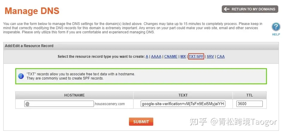 txt记录不像A记录不需要很长时间来传播,你提交记录之后可以直接回到google search console界面,点击verify,基本就会通过了。