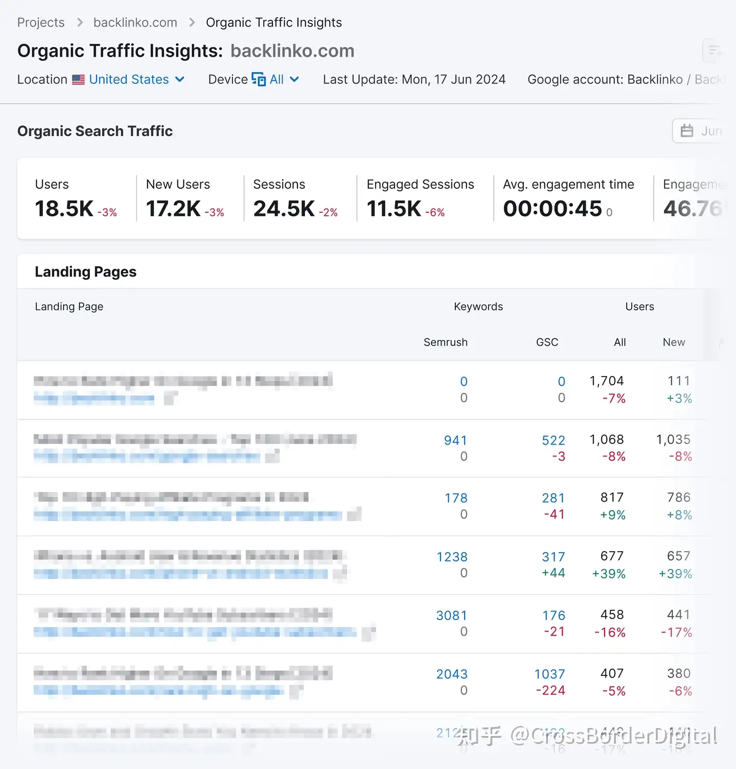 设置项目后,添加Google集成以将你的Semrush项目与GA4和GSC连接起来。这样一来,Semrush将成为你获取数据洞察的一站式数据后台。通过将GA4和GSC连接到Semrush,除了Semrush提供的关键字提示之外,你在查看有机流量洞察时还可以获得两个新的重要信息来源: