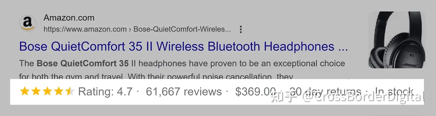 结构化数据是一种代码,可告知搜索引擎你页面上的内容。这也称为架构标记。它可以帮助产生丰富的结果,例如你直接在 SERP 上看到的评级或价格详情: