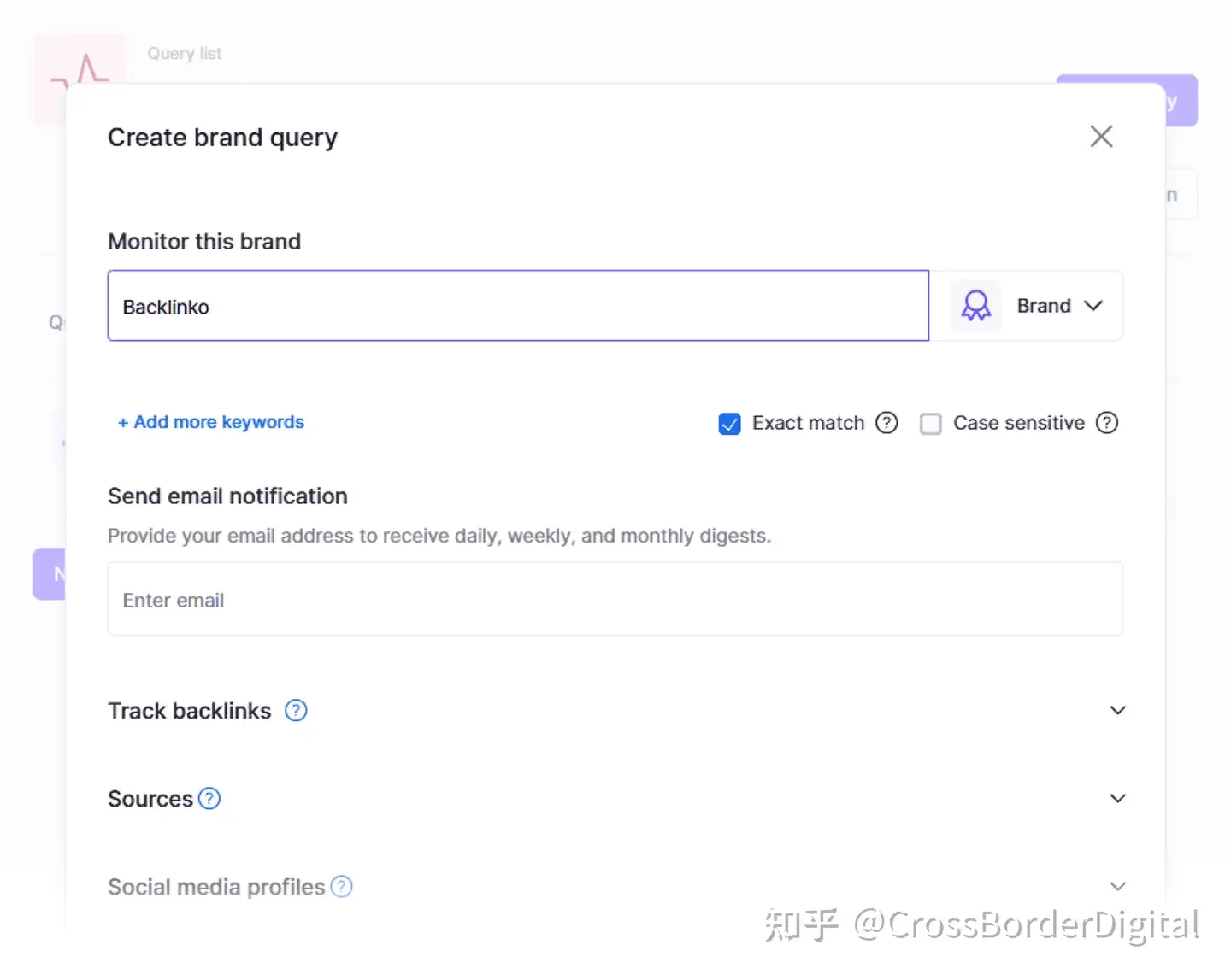 在其他网站上提及你的品牌或商店也是获得链接的简单机会。使用 Semrush 的品牌监控工具跟踪提及你品牌的网站。 特别是那些没有任何链接到你网站的网站。