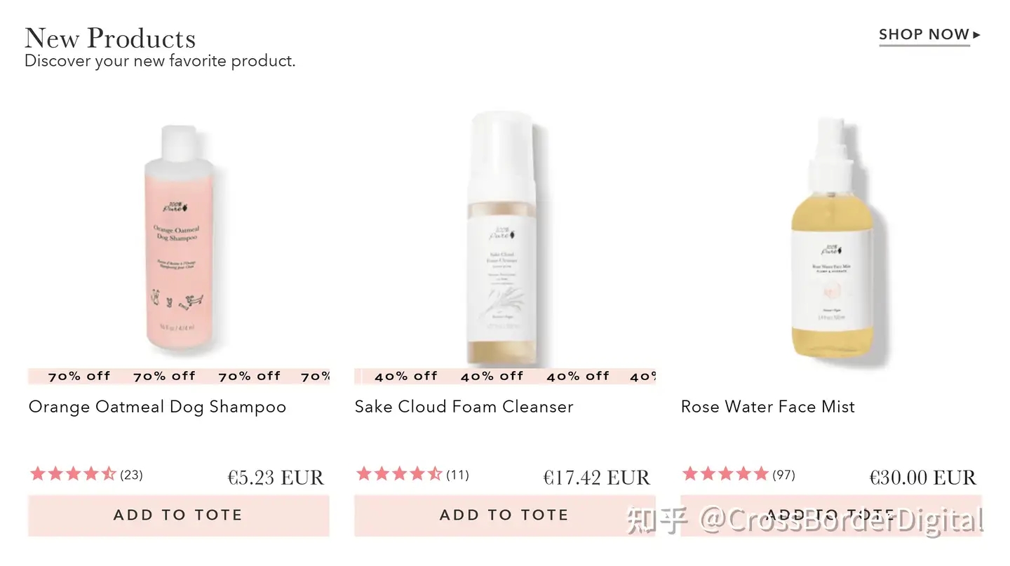 顶部菜单并不是浏览100percentpure站点的唯一方式。其主页还通过直接连接到产品页面来突出显示一些产品,例如“新产品”部分。