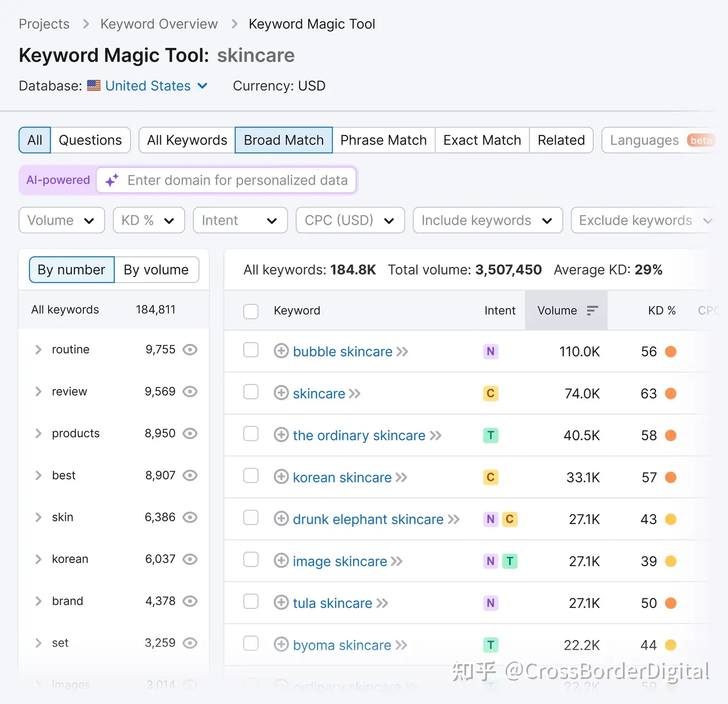 优先使用关键词战略构建器中的信息来确定可能的主题分类。考虑关键词的数量、难度、搜索量以及分类中关键词的平均意图。