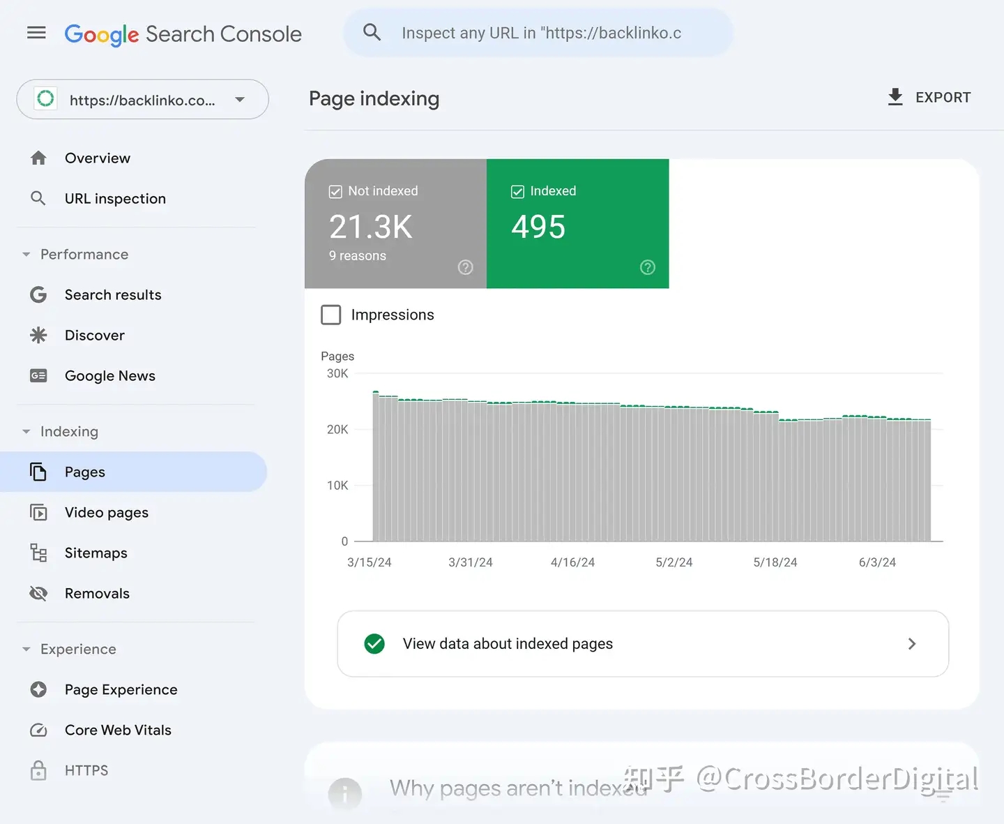 有了这些信息,Google 就会抓取你的网站。当你转到“索引”>“页面”时,你将看到结果数据。