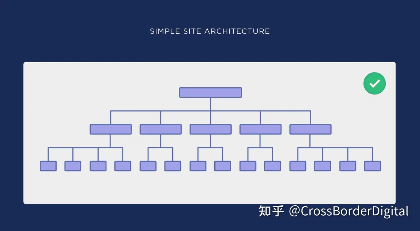 使用扁平而宽阔的网站结构可以使访客在主页上仅需几次点击即可轻松找到你网站上的内容。具体来说,你的主页应该链接到类别页面,类别页面应链接到子类别页面,子类别页面应链接到具体的产品页面。这种方法下,你的网站架构将呈现如下结构: