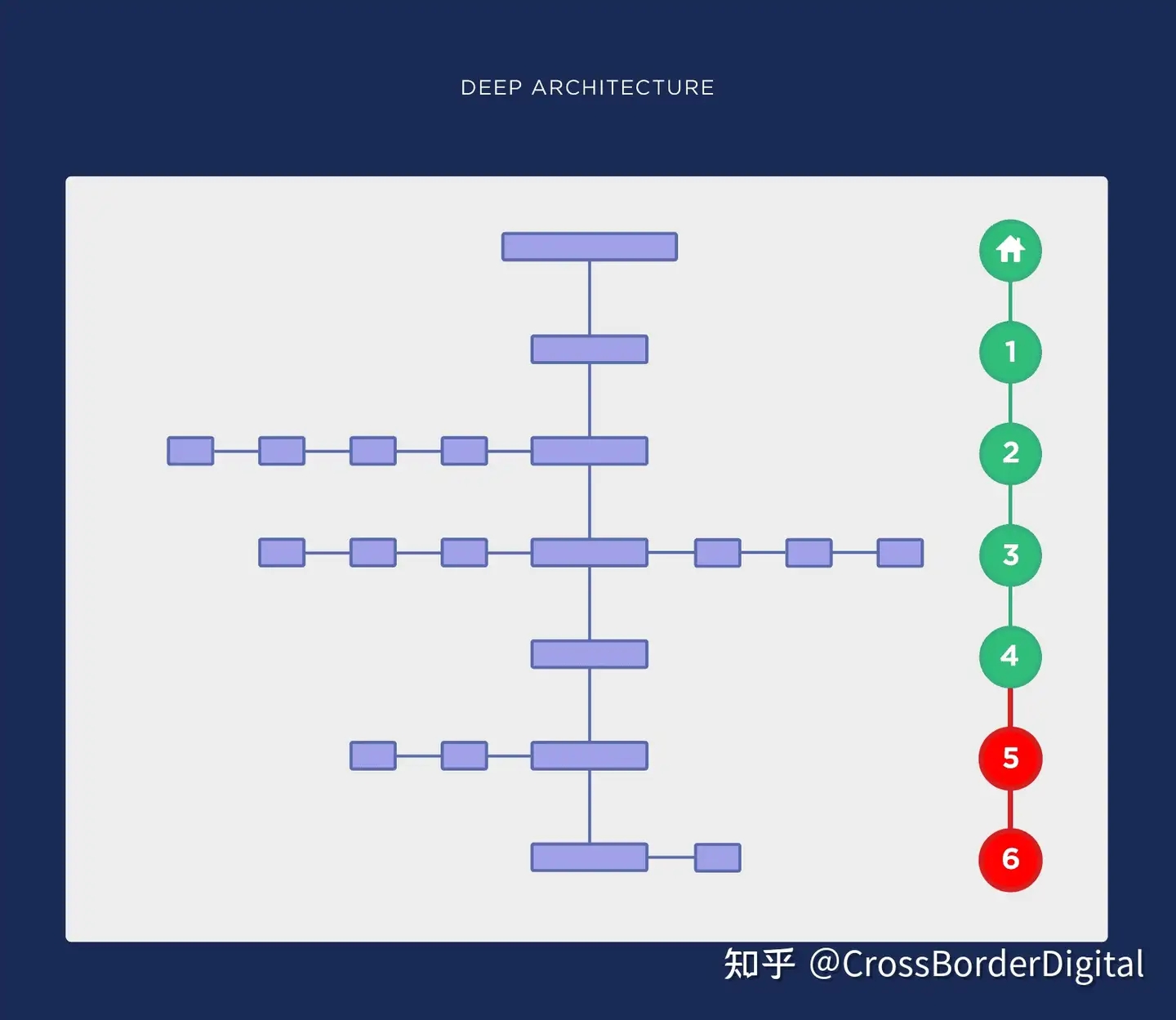 与这种狭窄而深层的结构相反,扁平而宽阔的网站结构更为浅显。