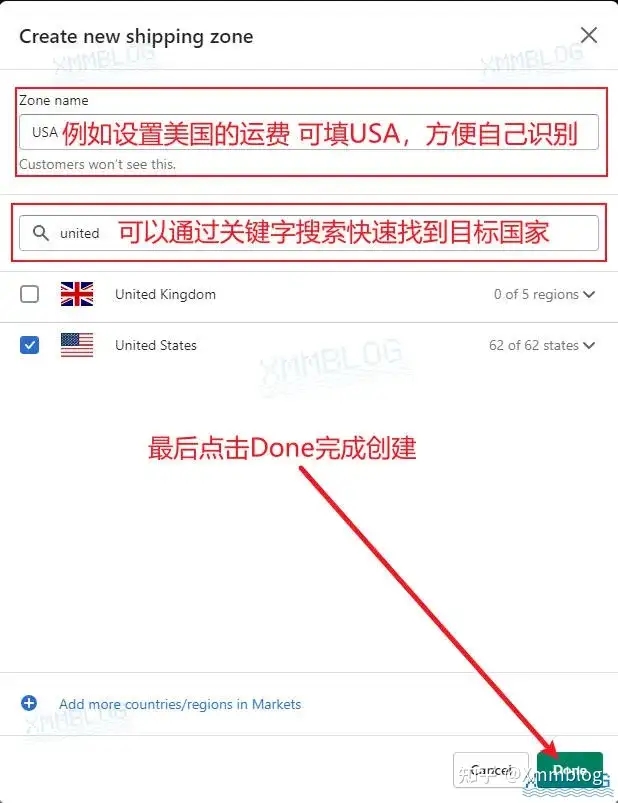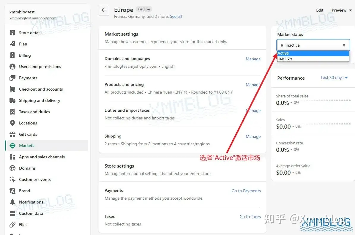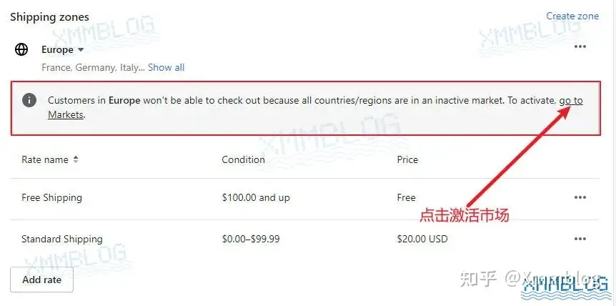 在设置运费之前,你需要到【Markets-市场】中添加国家或地区。